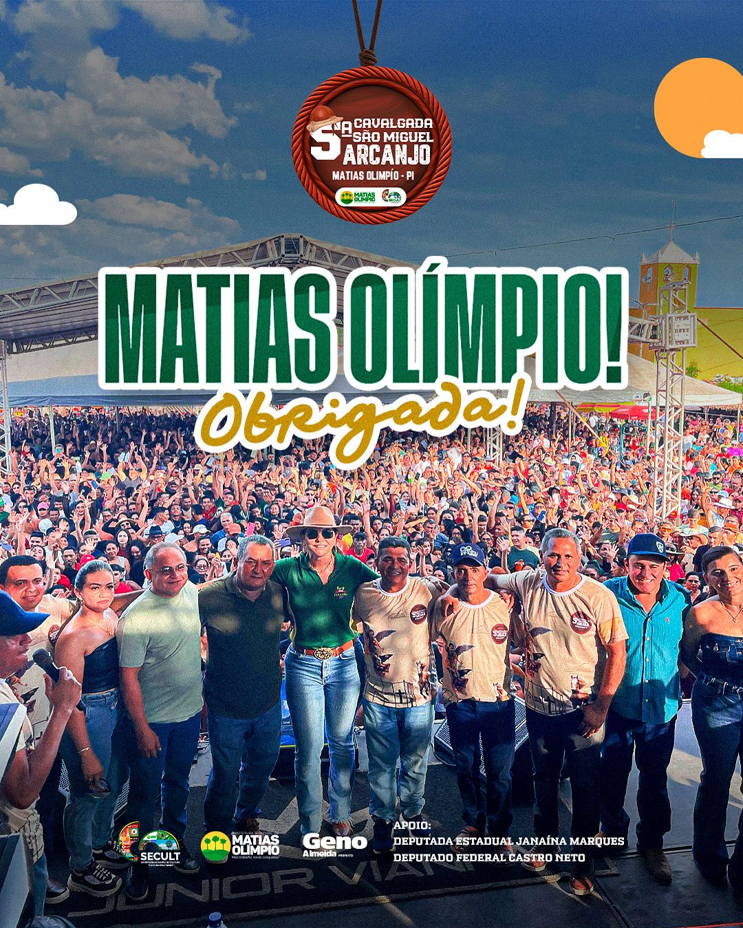 Organizada pela Secretaria Municipal de Cultura com o apoio da Prefeitura Municipal e todas as demais Secretarias, a cavalgada tornou-se um dos momentos mais esperados do calendário cultural local, reafirmando a identidade do nosso povo e a importância de preservar costumes que atravessam gerações. Por onde a cavalgada passou, deixou alegria, emoção e o sentimento de pertencimento de uma comunidade que se orgulha de sua história. O sucesso dessa edição foi resultado de um grande trabalho em equipe. Cada detalhe foi planejado e executado com dedicação: desde a organização do percurso, a recepção dos participantes, até o cuidado em proporcionar segurança e acolhimento a todos que prestigiaram o evento. Nesse sentido, a Prefeitura Municipal reconhece e agradece profundamente a todos os secretários, servidores e colaboradores que se envolveram diretamente, colocando empenho, energia e amor pelo que fazem. Sem a colaboração de cada um, nada disso teria sido possível. A 5ª Cavalgada de São Miguel Arcanjo não é apenas um evento, mas um símbolo de união. É a expressão viva de um povo que valoriza suas tradições, cultiva a fé e acredita que juntos podemos construir uma cidade mais forte, acolhedora e orgulhosa de suas raízes. A gestão municipal reitera seu compromisso de continuar apoiando iniciativas que preservem a cultura, incentivem a integração da comunidade e fortaleçam os laços que unem nossa gente.