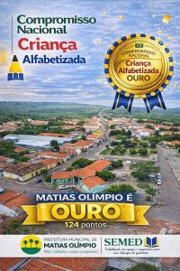 O município de Matias Olímpio conquistou o Selo Ouro no Programa Nacional Criança Alfabetizada, um reconhecimento que celebra o compromisso com a educação e com o direito de toda criança aprender a ler e escrever na idade certa.